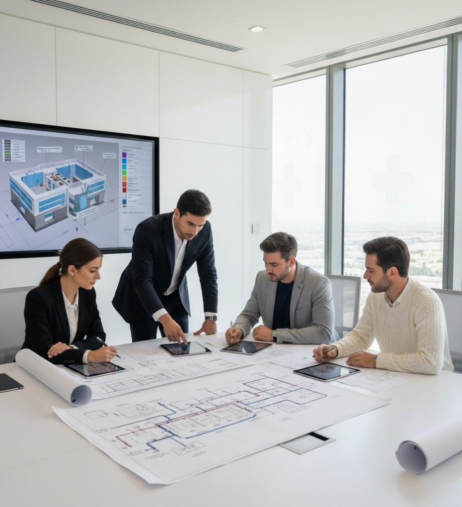 Work on regulated healthcare projects with a multidisciplinary team. Prequalified DHA consultant with ISO-aligned systems and clear growth paths.