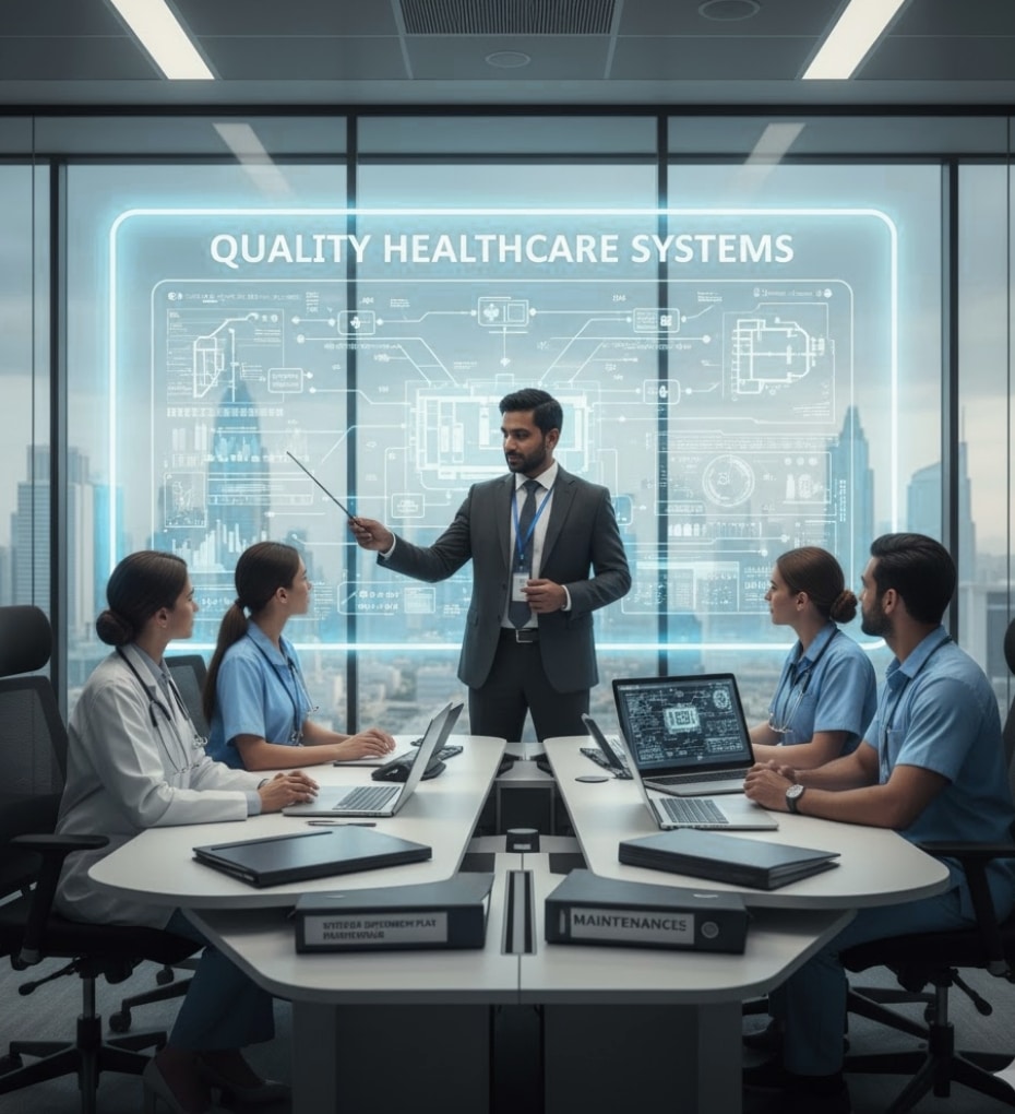 We design and implement structured Quality Management Systems (QMS) aligned with UAE healthcare laws and international standards. This includes creating policies, protocols, and service delivery frameworks that ensure patient safety and operational excellence.